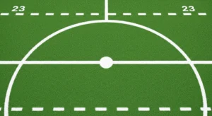 The striking circle, commonly known as the D, is one of the most important zones on the field. It sits in front of each goal and forms a semicircular area. Importantly, a goal only counts if the ball is played from inside this zone. Because of this rule, attackers focus heavily on entering this space. Meanwhile, defenders work hard to protect it. As a result, most scoring opportunities develop inside the D.